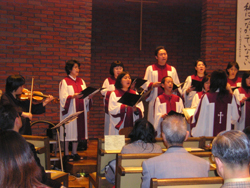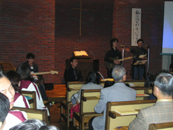 賛美は有志のゴスペルバンド、吉川教会の聖歌隊の他に、急きょ神学生の応援で、亀井道子先生がパイオリンの演奏をしてくださいました。(曲目は、Deep