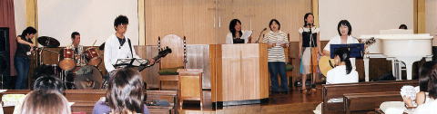 ?C多くの人との出会い キャラバン派遣中、本当に多くの方と温かい交わりが持てたことは大きな財産です。今回1回きりの交わりではなく、今後も両教会のことを祈りのうちに覚え、よき交わりができればと思います。また先生方、信徒のみなさん、子供達に心から感謝します。特に私達が10日間の長きに渡り寝泊りさせていただいた秋鹿教会の小川文子先生が、賜物を生かして主に用いられているご様子を見ることができたのは大きかったです。先生とは1年間、同じ学び舎で生活させていただきましたが、今回牧会現場を実際に見せていただきいい刺激を与えられました。またキャラバンメンバーである3年生の浅田美由紀神学生、岡田はるみ神学生、1年生の野口佳男兄弟、そして引率してくださった大友英樹先生を主の御心によって与えられたことにも感謝です。今回10日間もご一緒させてもらったことで、みなさんそれぞれ新たな面を発見できました。今後も今回ご一緒させてもらった経験をいかし、さらに助け合うことができればと思いました。