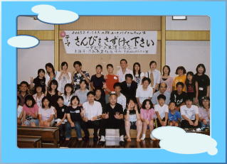 16日 ・ ・ ・a.m.7:00朝の祈り(本江有希姉奨励)。8:00朝食。9:00分団(「あなたとわたし」)。11:00欄ミュージアムへ出発。p.m.0:00昼食。1:00自由時間(子供たちと散々遊ぶ ・ ・ ・)。4:00分団発表。6:00夕食。7:00集会?U(ここで賛美礼拝として、私が1時間任された。説教も担当)。8:00花火。9:00入浴。消灯。
