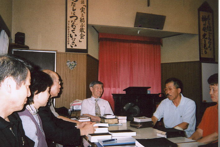 さて、28日の夕方、ぶどう畑の真ん中にある山梨八代教会に到着し、中山先生、倫子先生の暖かいお出迎えと、倫子先生の美味しい手料理を皆満腹まで戴きました。その夜7:00からの祈祷会で、神学生の自己紹介と鵜沼先生、教会員の方々の紹介がそれぞれあり、その時、中山先生の弟さんご夫妻と柏兄が、昔々同じ町内に住んでいたという奇遇を発見し、神様の導きを改めて感じたひとときでもありました。